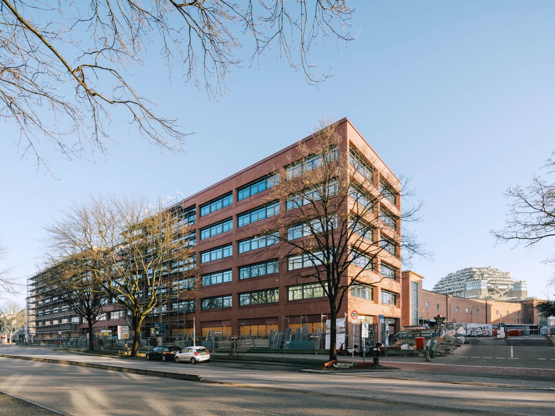 In Hamburg bezogen wir im Oktober unseren neuen Haupt­sitz, das Pauli­haus, zusammen mit unseren Baupart­nern steg und Pahnke. Das neu errich­tete Büro- und Gewer­be­ob­jekt befindet sich am Neuer Pferde­markt 34 im Stadt­teil St. Pauli. Die vorhe­rige Geschäfts­adresse lag nur wenige hundert Meter entfernt am Millern­tor­platz. Der sechs­ge­schos­sige Backsteinbau bildet den markanten Abschluss des früheren histo­ri­schen Rindermarktareals.
