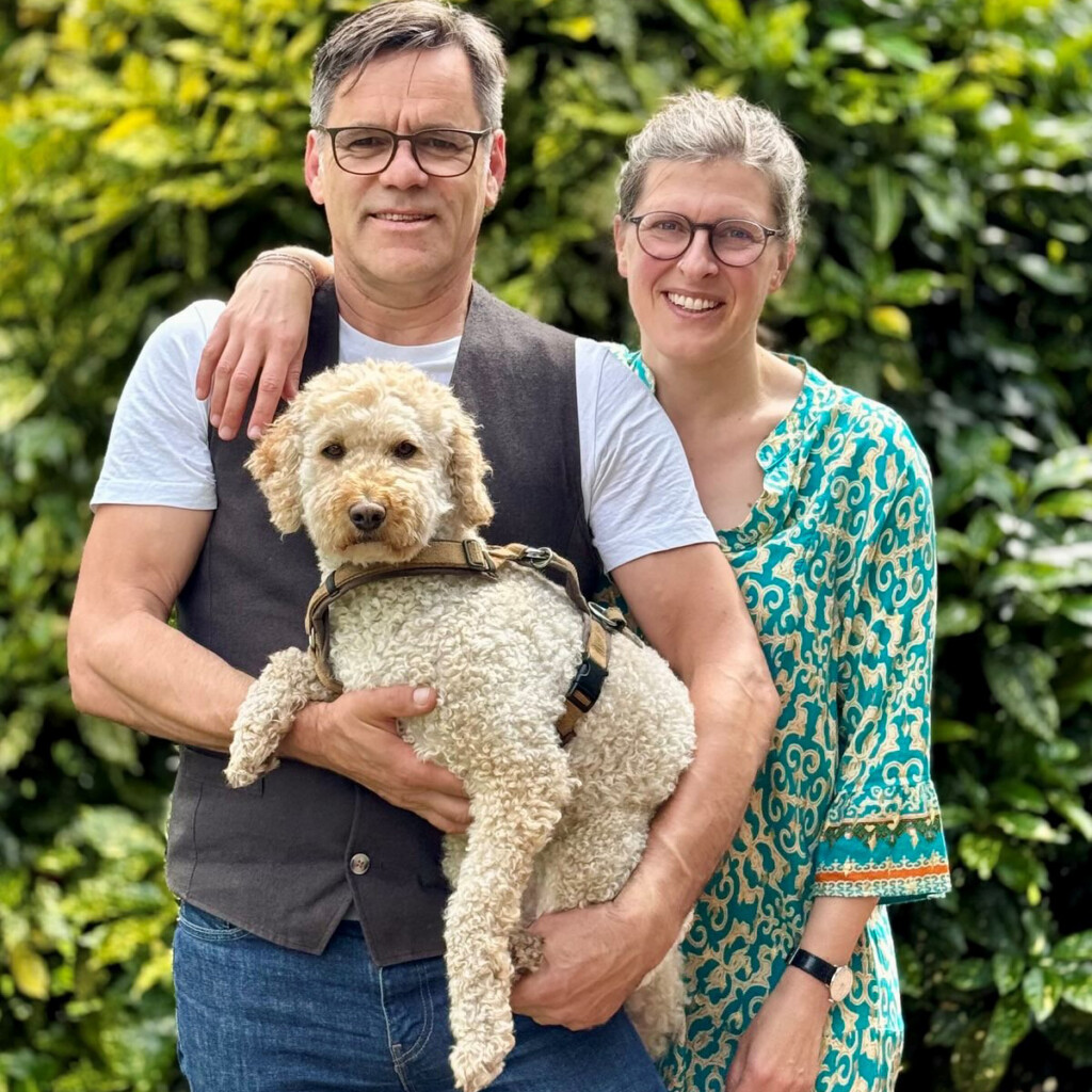 Bei FRIDA kommen Menschen zusammen, die bislang unterschiedlich viele Erfahrungen mit dem Thema Leben in Gemeinschaft gemacht haben – oder auch gar keine. Im Leben von Silvia Plücker ging es nach ihren Worten eigentlich immer darum, Gemeinschaftserfahrungen zu machen. Das Thema zieht sich wie ein roter Strang durch ihr Leben. Ebenfalls WG-erprobt und praktisch zeitlebens interessiert an verschiedenen Konzepten sozialen Miteinanders ist Silke Alshuth, die FRIDA schon früh auf dem Radar hatte, dann aber zwischenzeitlich wieder Abstand nahm und erst 2022 fest beitrat. Bei Wolfgang Schneider, seit Herbst 2024 bei FRIDA, war zwar schon jahrzehntelang ein Interesse an Projekten gemeinschaftlichen Wohnens vorhanden, aber letztlich passte es dann nie. Bis FRIDA kam. Lothar Möhle und Ute Schadek, seit Sommer 2023 feste Mitglieder, kommen als Paar mit Hundedame Motte zu FRIDA und beschreiben es eher als Zufall, dass sie nun dabei sind, denn aktiv auf der Suche waren sie damals nicht. Er bringt viele Erfahrungen im gemeinschaftlichen Wohnen mit, sie ein immer schon vorhandenes großes Interesse daran und das sichere Gefühl, dass ihr das liegt und sie künftig gerne so leben möchte.